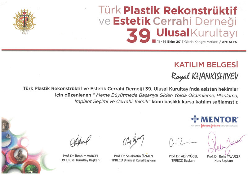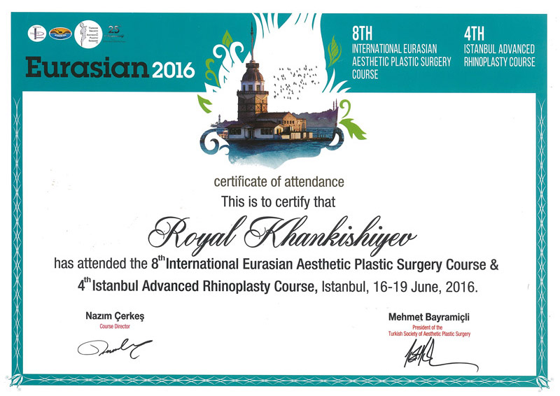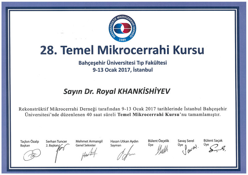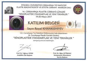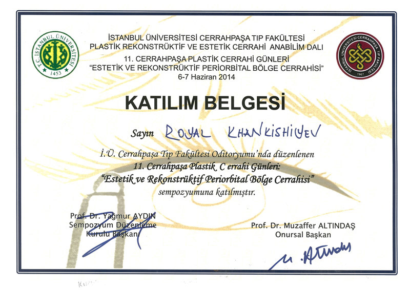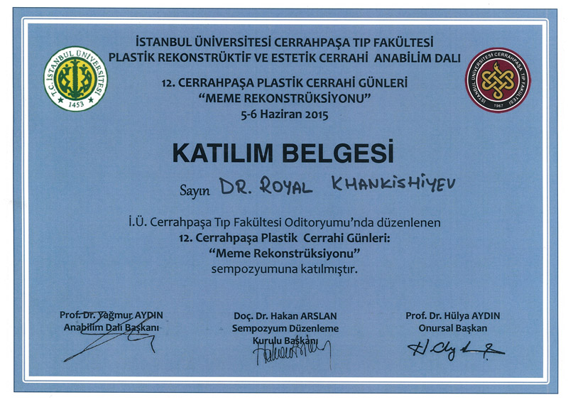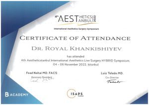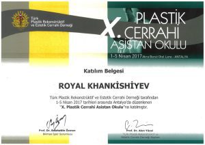 He passed the medical specialty examination at Istanbul Cerrahpaşa Faculty of Medicine, Department of Plastic, Reconstructive and Aesthetic Surgery, and worked as a research assistant doctor for 5 years. During this time, he received training from many valuable teachers in our country and internationally, learned about many cases and performed many surgical procedures. Dr. Royal Khankishiyev is a qualified medical professional with years of theoretical and practical experience in various medical and surgical subspecialties. During and after his education, he had the necessary certificates and also carried out many activities related to his field. After his specialization training, he worked in many private health institutions.
